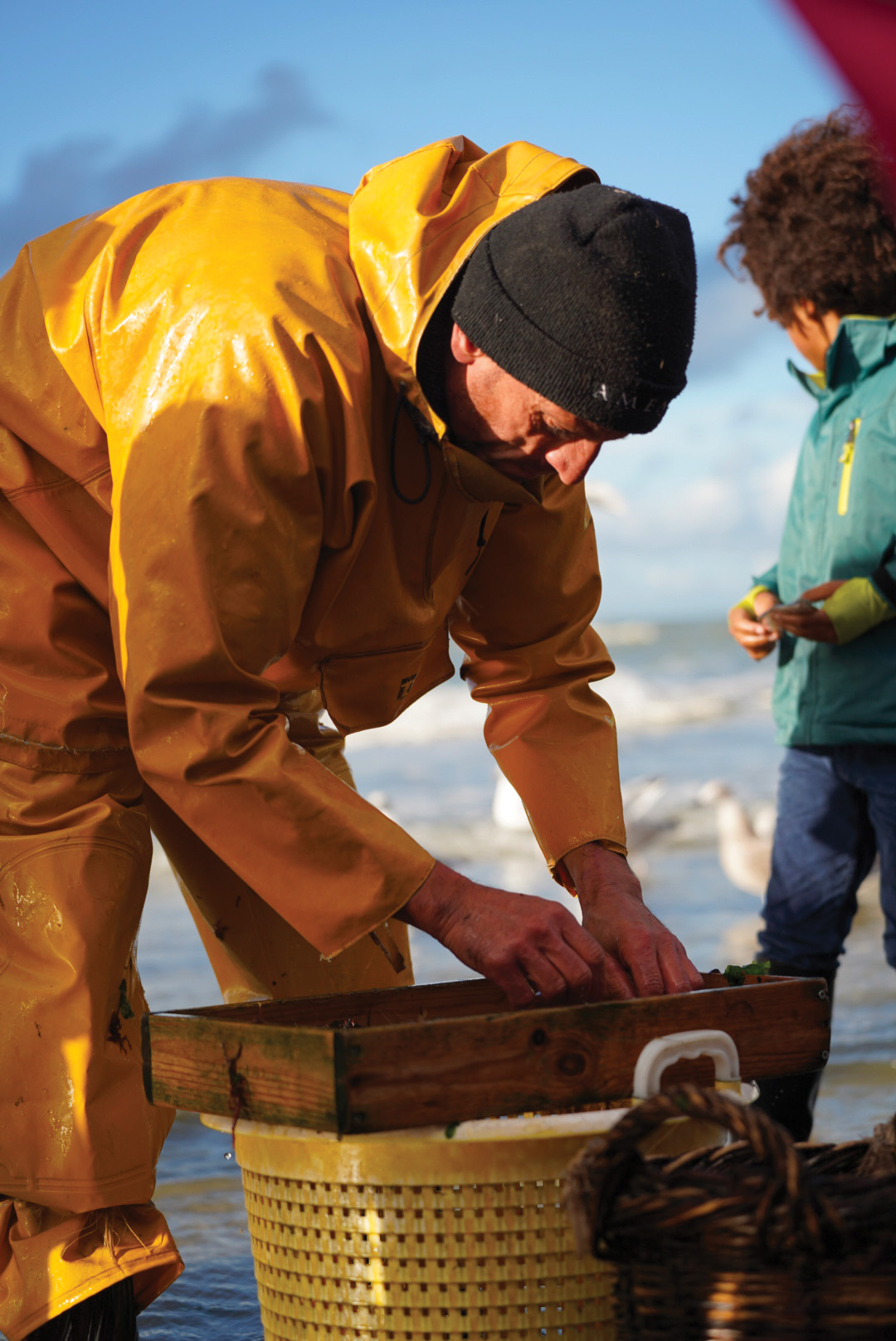 Les premiers récits de pêche à la crevette à cheval remontent au XVIe siècle. À l’époque, elle était pratiquée par des pêcheurs venus d’Islande. « Ils louaient des terrains avec des maisons dans la région. Lorsqu’ils n’étaient pas en mer, ils pêchaient sur le littoral et vendaient leurs crevettes aux moines de l’Abbaye de Coxyde » raconte Eddy. La pêche à la crevette à cheval se répand alors du nord de la France jusqu’en Angleterre. À partir du XVIIIe siècle, les scientifiques s’inquiètent de cette intensification et alertent sur les dégâts qu’elle pourrait causer pour les fonds marins. Au XIXe siècle, si la pêche à la crevette est interdite à grande échelle, elle est consacrée à d’autres usages. « Les laitiers, les charbonniers, les fermiers qui avaient un cheval continuaient à pêcher la crevette, mais pas pour la vendre. Les crevettes étaient utilisées comme engrais pour les champs » explique Eddy. Aujourd’hui, il ne reste que douze familles qui perpétuent la tradition. Bien qu’ils aient un métier à côté, ces passionnés continuent de pêcher par amour pour la mer et les chevaux. Selon Eddy, c’est un héritage qui se transmet de génération en génération. Il est d’ailleurs fier de voir de plus en plus de jeunes s’y intéresser : « Moi j’ai plus de 80 ans, je ne pêche plus, mais mon beau-fils s’y met ! ». Pour les habitants de Coxyde, cette coutume est un vrai moteur de cohésion qui cristallise une identité culturelle commune.